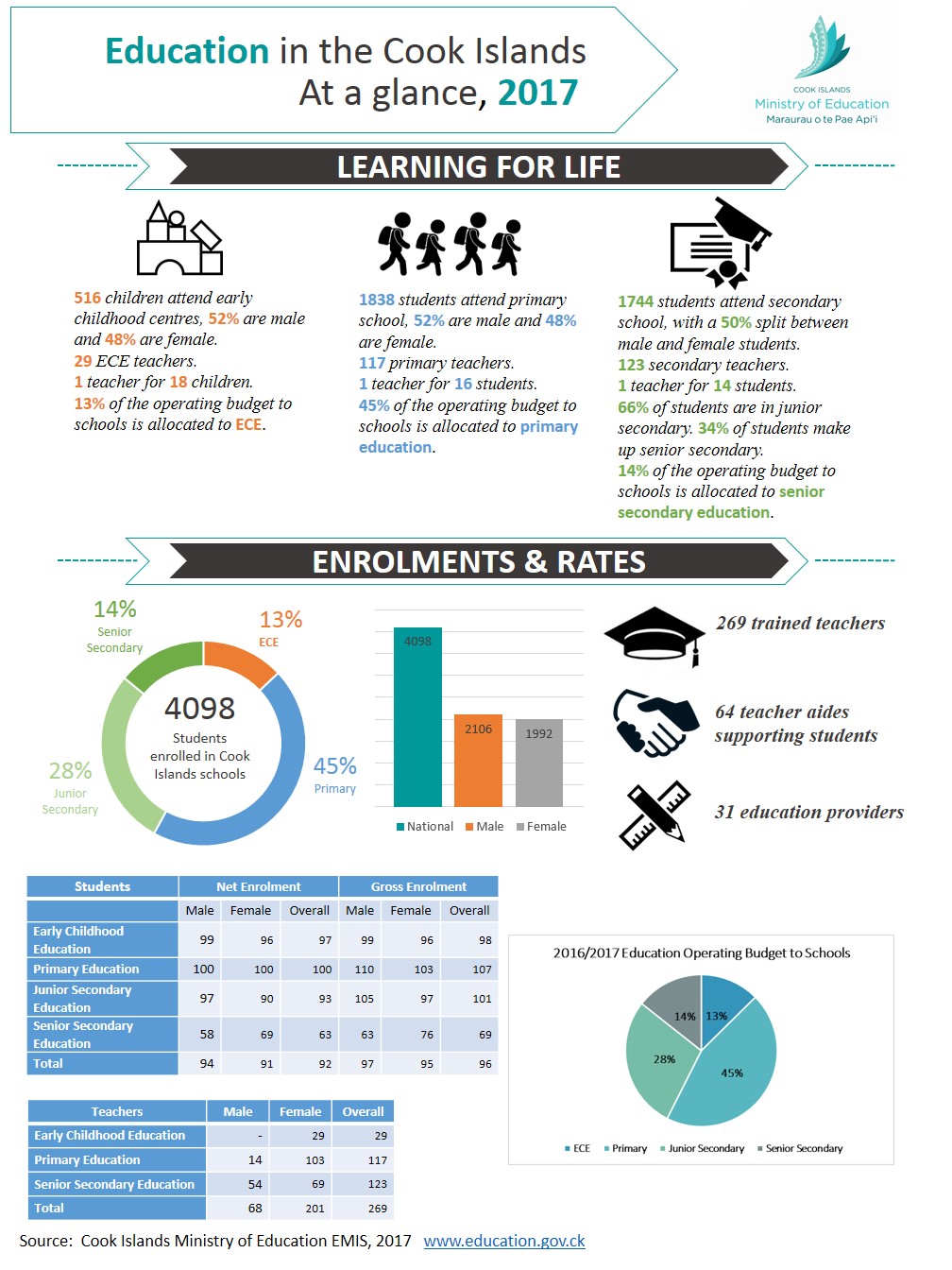 The Ministry of Education acknowledges the contributions made by all the schools, providers, ministry divisions, regional and international agencies, notably that of the Pacific Community (SPC) and their Statistics for Development Division, who support the collection and data analysis of the education statistics for annual publication.